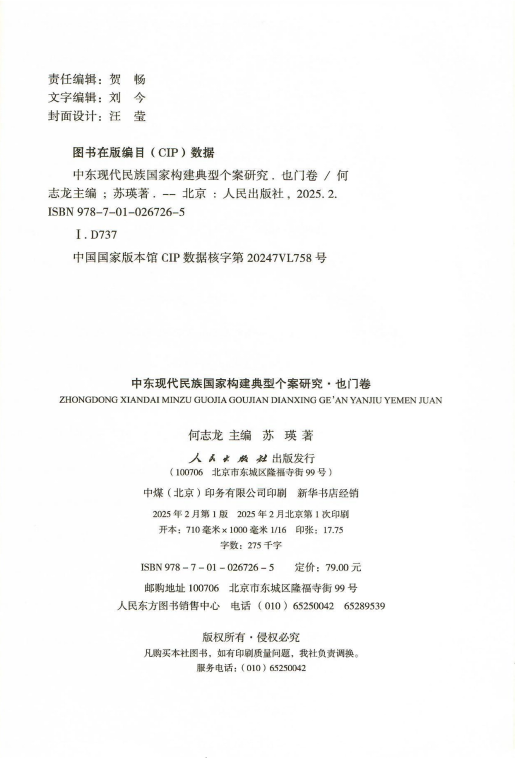 近期,由我院执行院长何志龙教授主编《中东现代民族国家构建典型个案研究·也门卷》出版,该书由人民出版社于2025年2月出版。此书为何志龙教授主持的国家社会科学基金重大项目“中东现代民族和国家构建的多维比较研究(多卷本)”(项目批准号:20&ZD240)的阶段性成果。