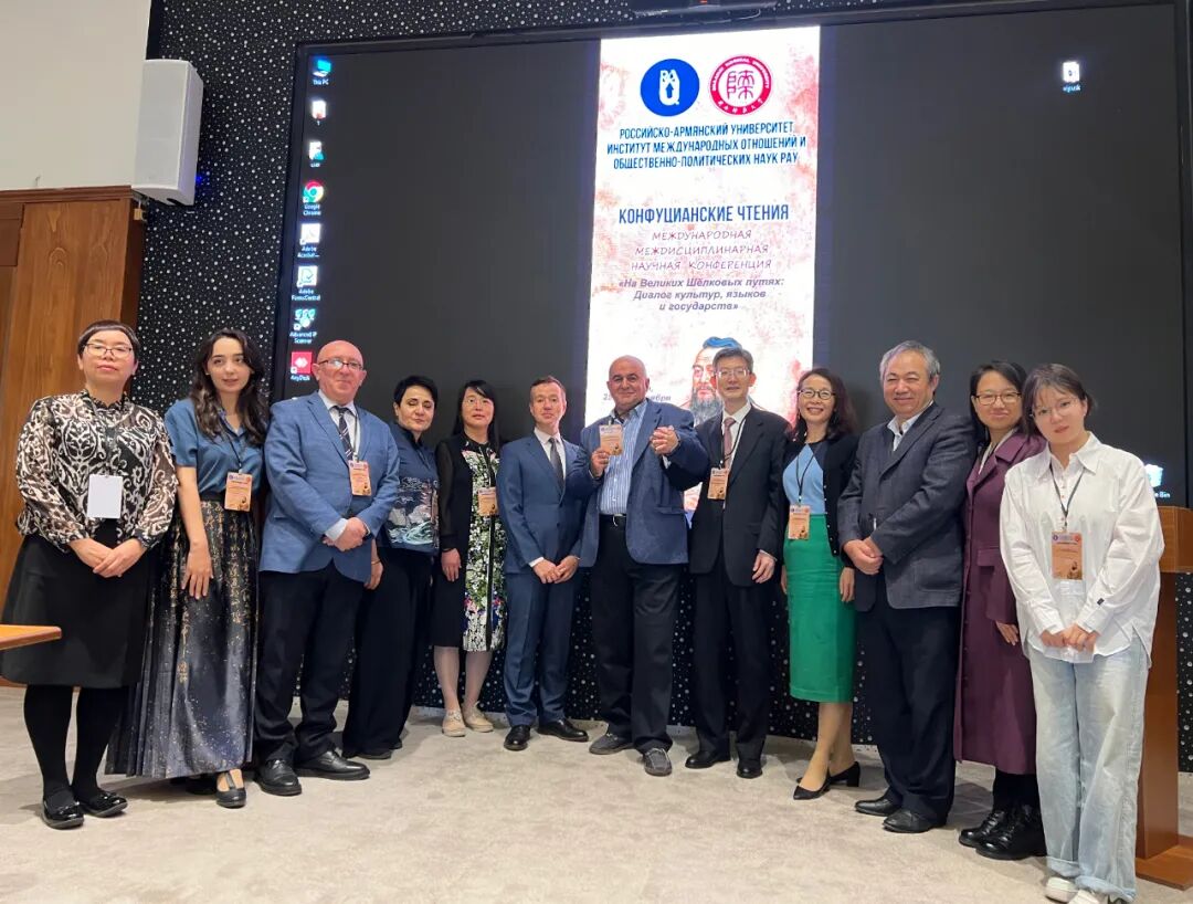 近日,应亚美尼亚俄罗斯-亚美尼亚(斯拉夫)大学邀请,我院执行院长何志龙教授率由我院研究员、我校历史文化学院教授韩中义、郭艳利、杨瑾,西安大唐西市博物馆副馆长阴玲玲,西北工业大学马克思主义学院教授蒲瑶,以及我院博士生代表贺梦楠组成的代表团赴亚美尼亚首都埃里温,参加“丝绸之路沿线:文化、语言与国家对话”国际跨学科学术会议。