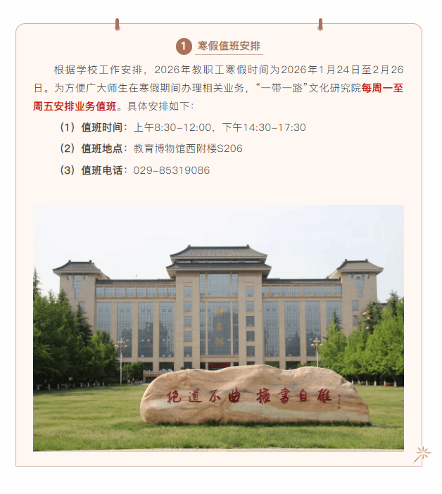 “一带一路”文化研究院寒假值班安排